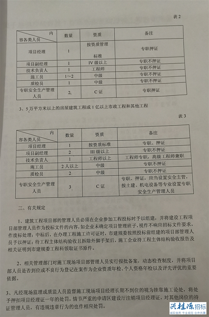 3、桂林建設(shè)與規(guī)劃委員會建規(guī)【2006】270號《關(guān)于調(diào)整建筑施工現(xiàn)場項目部管理的通知》詳見公告附件1。